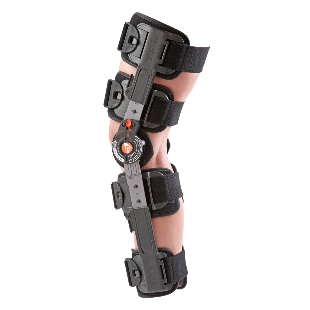 - Easy to use ROM hinge with quick-adjusting flexion and extension stops to control and limit knee flexion and extension